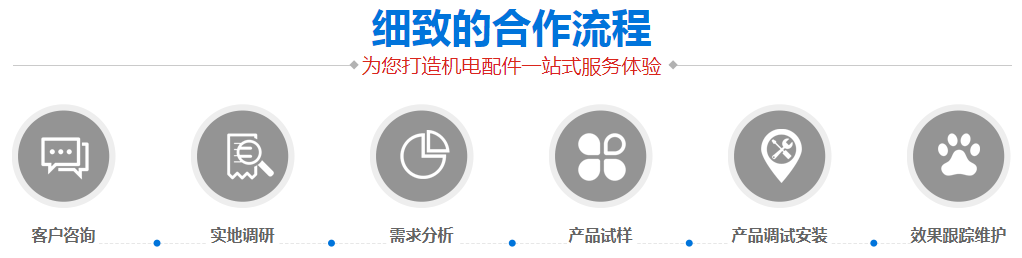 2、產(chǎn)品試樣:根據(jù)客戶需求提供合適的樣品試用,密切關(guān)注試用情況,調(diào)用供應(yīng)廠家技術(shù)資源,不斷調(diào)試、更換合適樣品,直至達(dá)到客戶需求,在機(jī)電配件使用過程中碰到的各類問題提供現(xiàn)場(chǎng)解答。